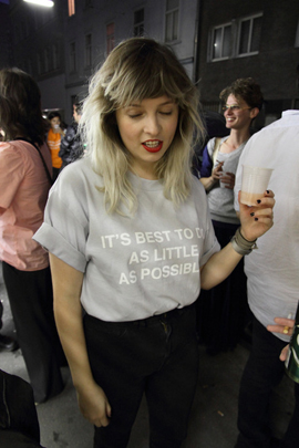 For this project the artists have been asked to play by a set of rules. It's a process of trial and error, artistic research and performative solutions. You may here expect some certainty through powerpoint presentations. And with the experience of materials at hand. Or you can begin with your own live body and awareness. Look about you, observe everything, how and why, and remember what came before. Repeat more than necessary. Discuss. Through the configuration of words, the transposition of affect, try to move meaning. Think about the most incredible thing ever – that moment when you brushed fame and glamour and success – and what's now missing?